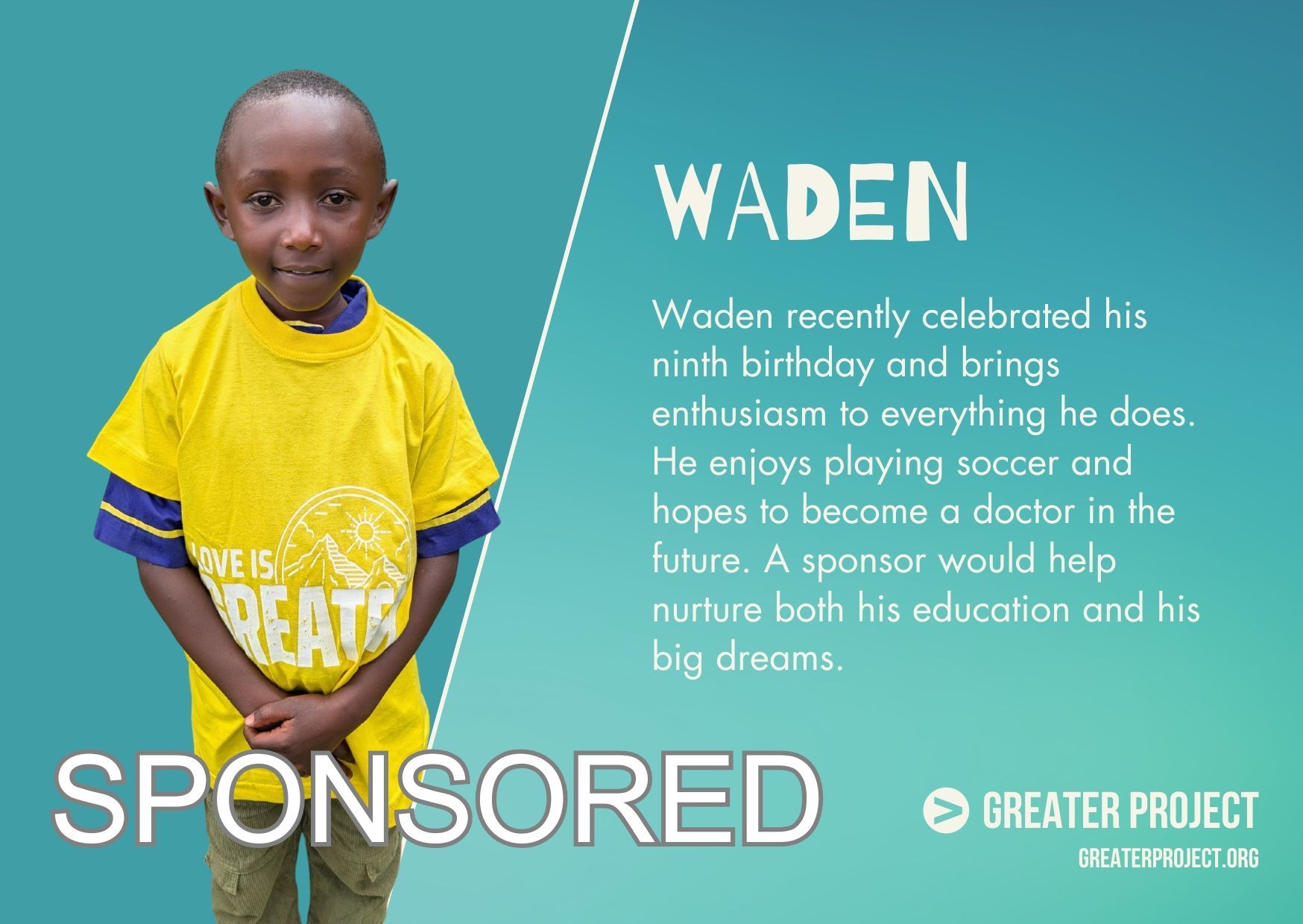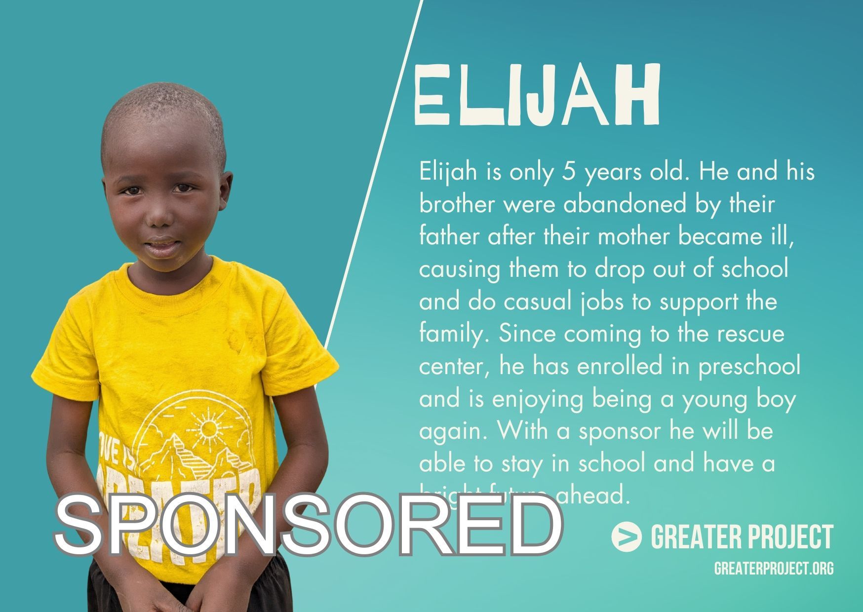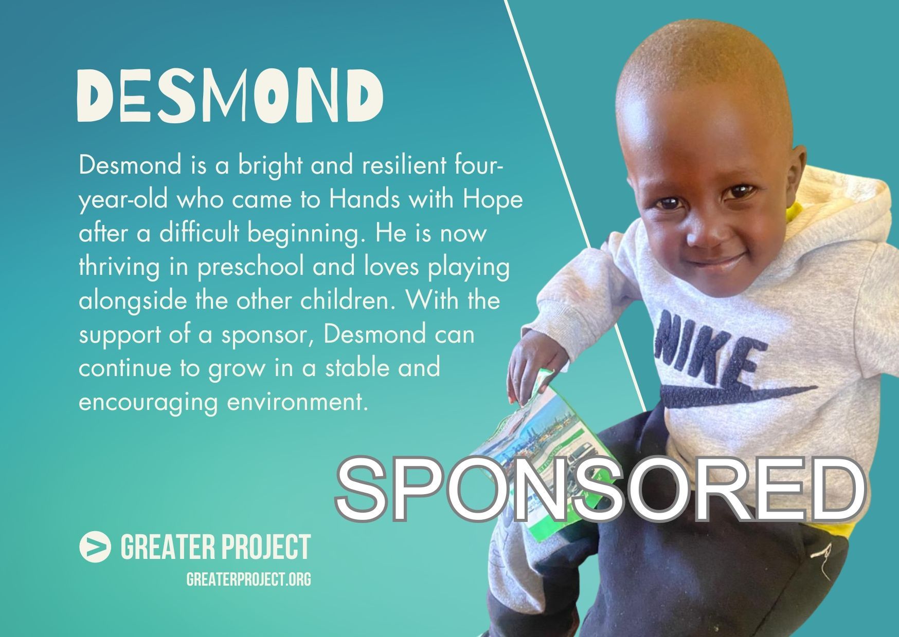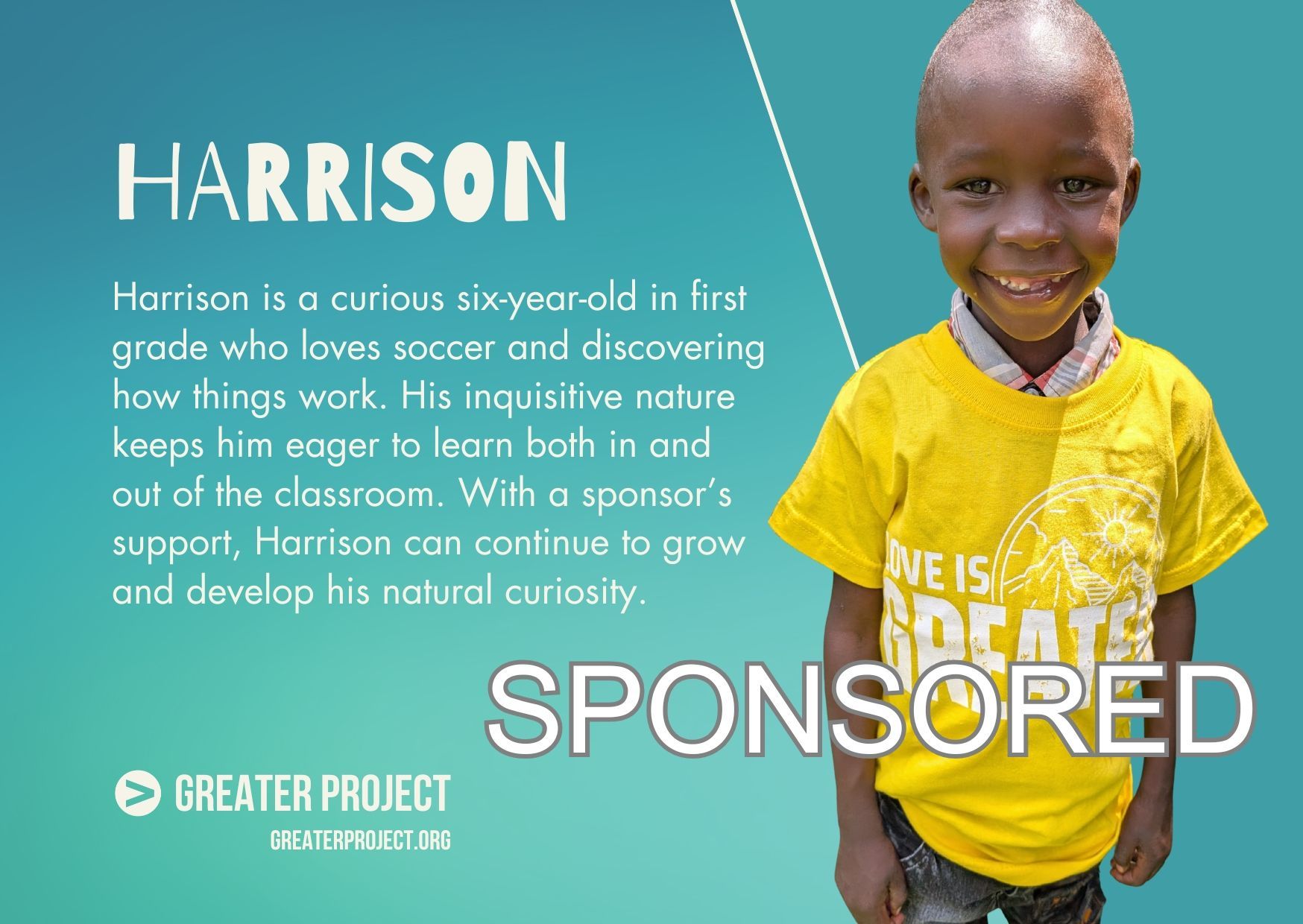 We keep in close contact with our directors at the children’s homes. Contact sponsorship@greaterproject.org with any questions you have.